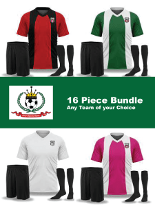 Bundle of 16 Includes: Any Team of your Choice 16 Jersey w/number 16 Shorts 16 Pairs of Socks (any color)